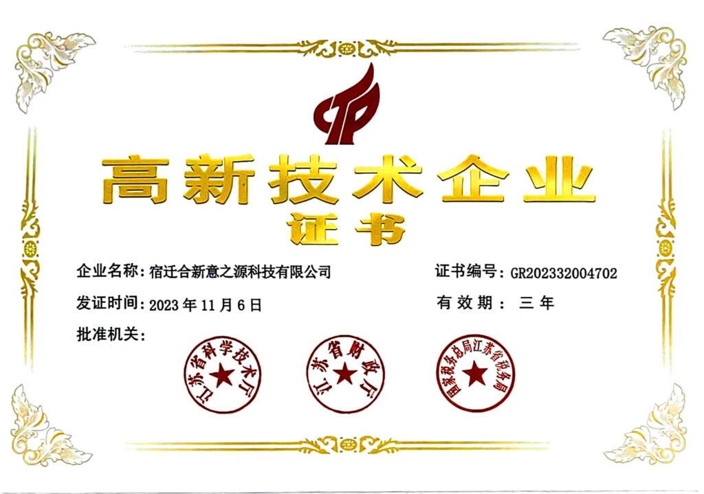 Recognized as a National High-Tech Enterprise, Hexinyi Zhiyuan demonstrates strong innovation capacity and continuous investment in advanced biomass material research and development.